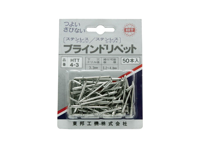 | 品番 | リベット直径(mm) | 締付可能板厚(mm) | リベット長さ(mm) | 入数 |